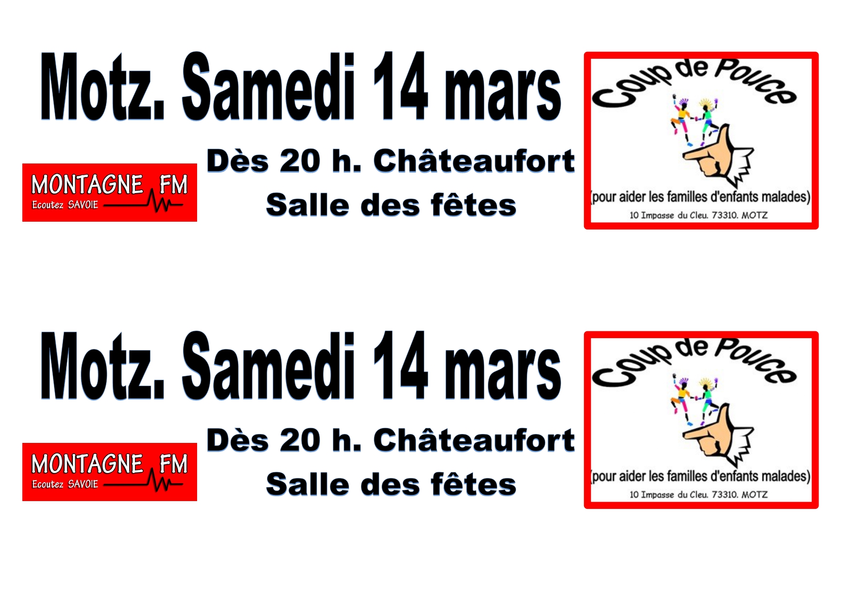 Ce service est totalement gratuit mais en échange nous demandons aux associations d’apposer le logo Montagne FM sur tous leurs supports de communication et d’envoyer la demande 15 jours à l’avance !